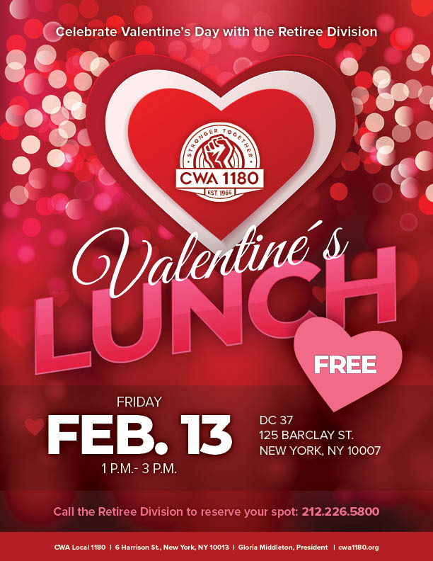 Fri. 2/13 | Valentine's Lunch FREE | DC 37 |
